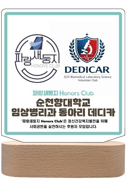 앞으로도 순천향대학교 임상병리학과봉사동아리 "데디카(Dedaca)와 파랑새둥지의 아름다운 인연이 계속되기를 기원합니다.