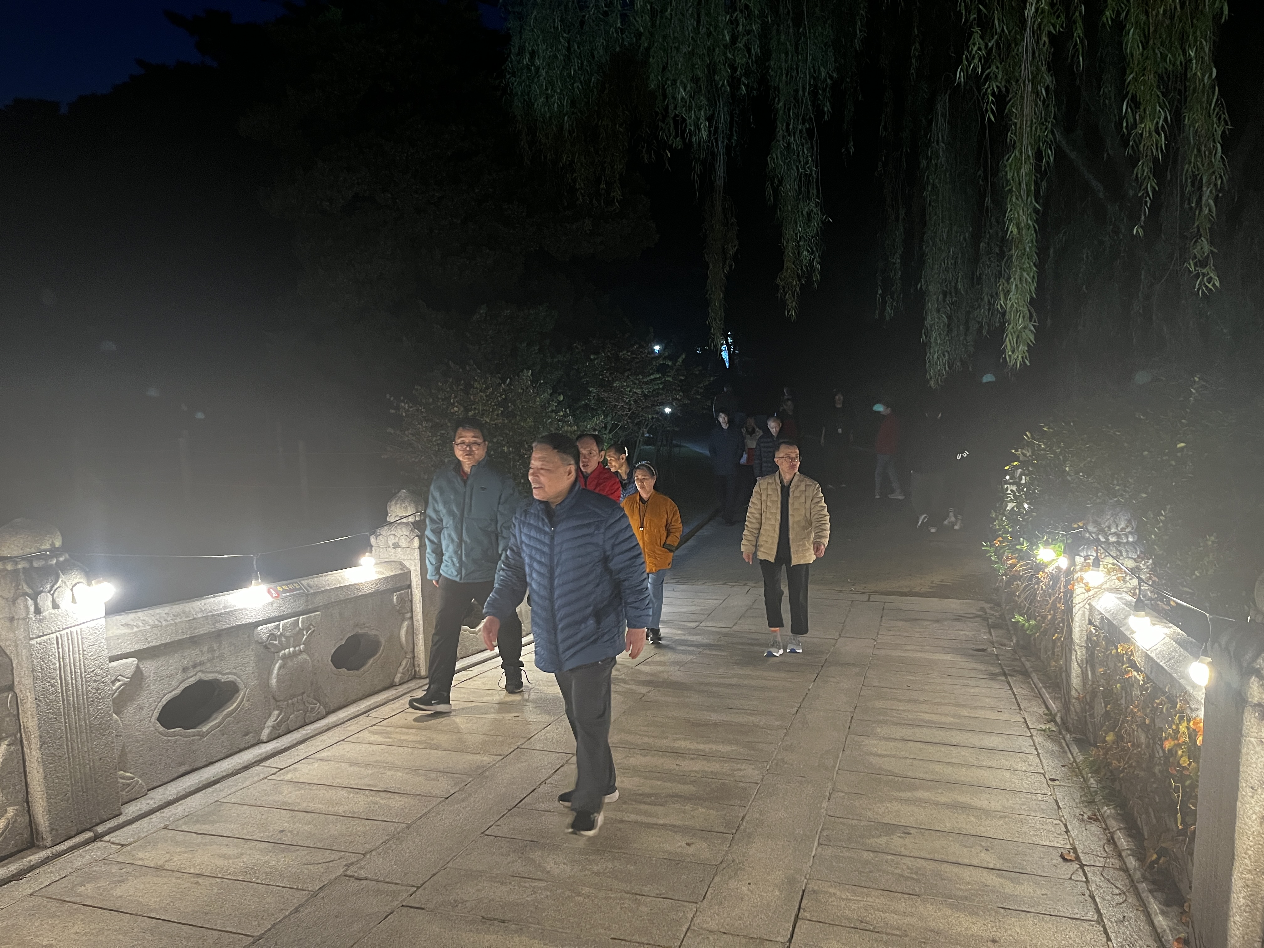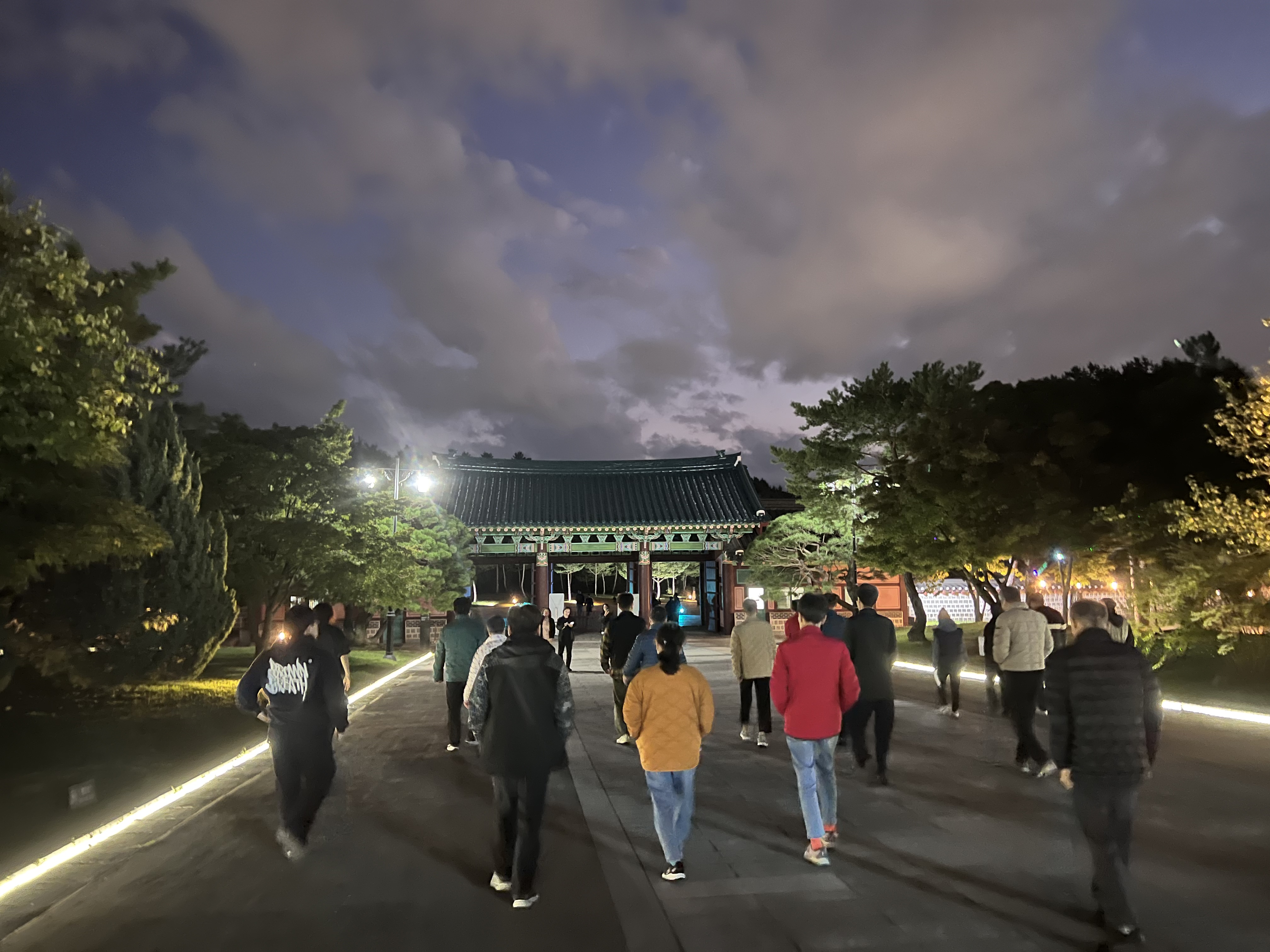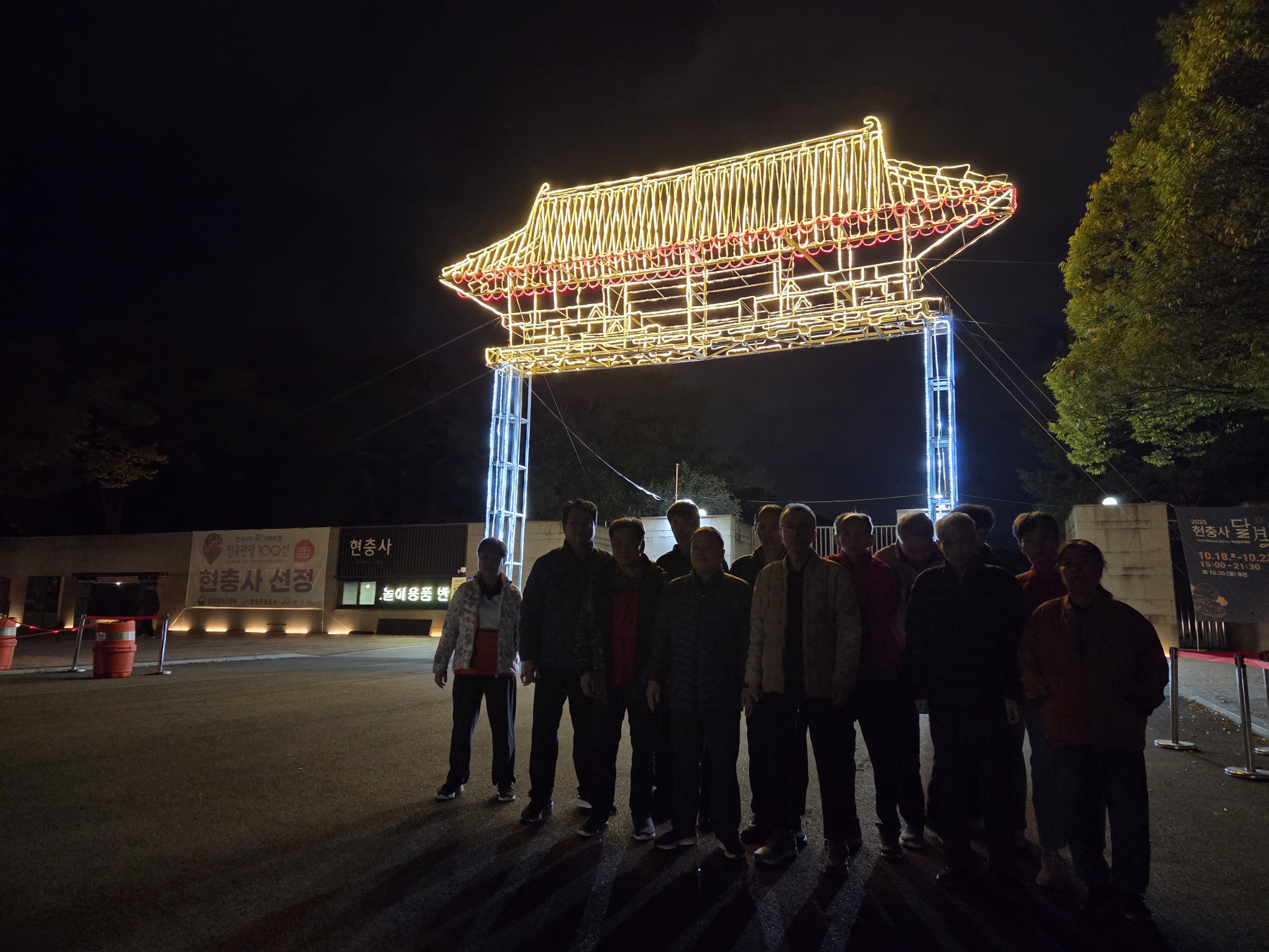 선선한 바람에 춥지도 덥지도 않은 날씨 덕분에 모두 편안하게 걸으며 즐거운 시간을 보냈고, 야경 속 현충사의 모습이 정말 아름다웠습니다.