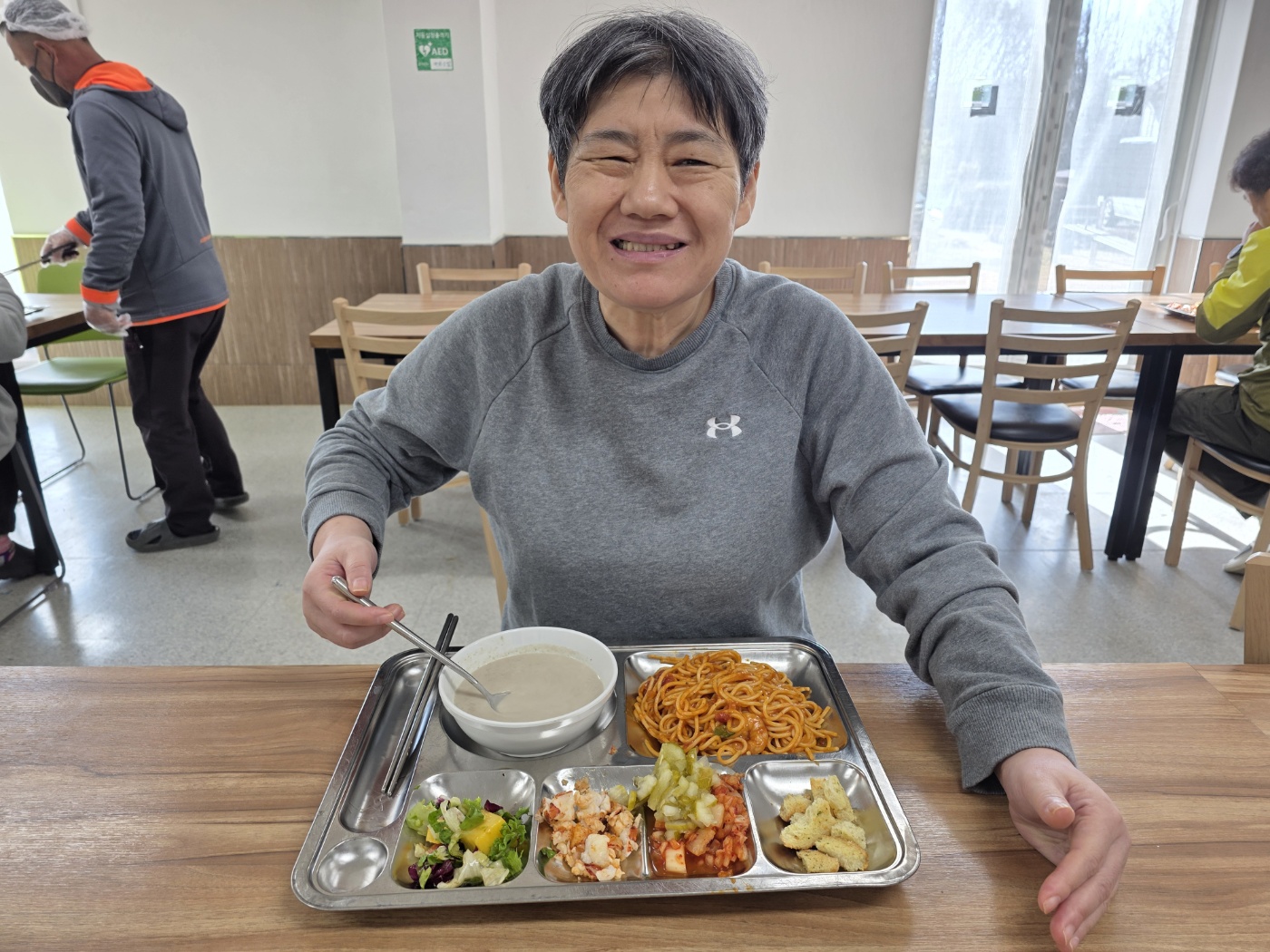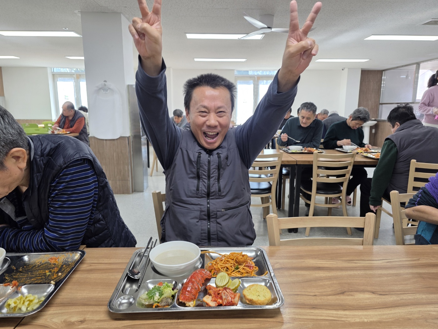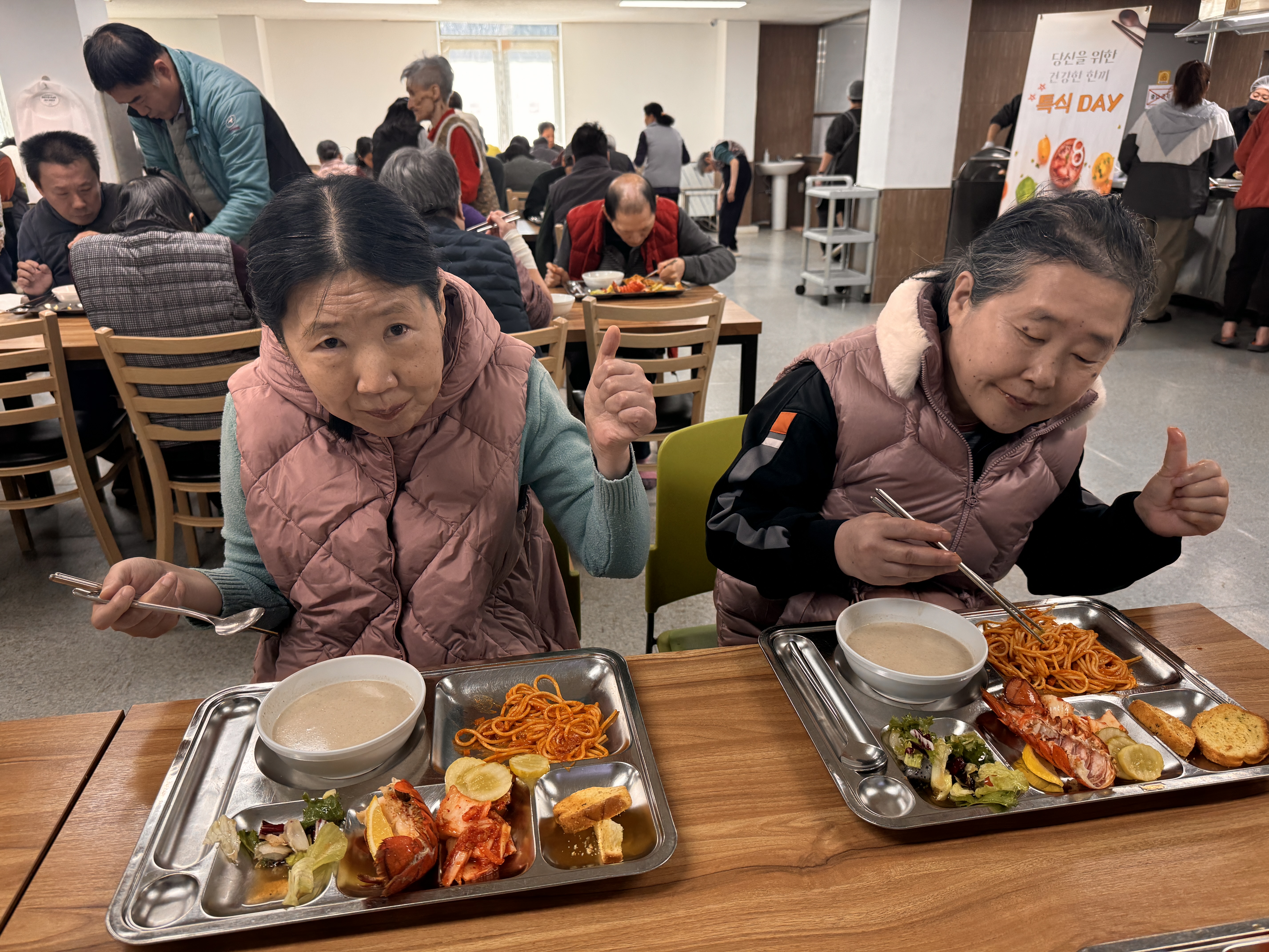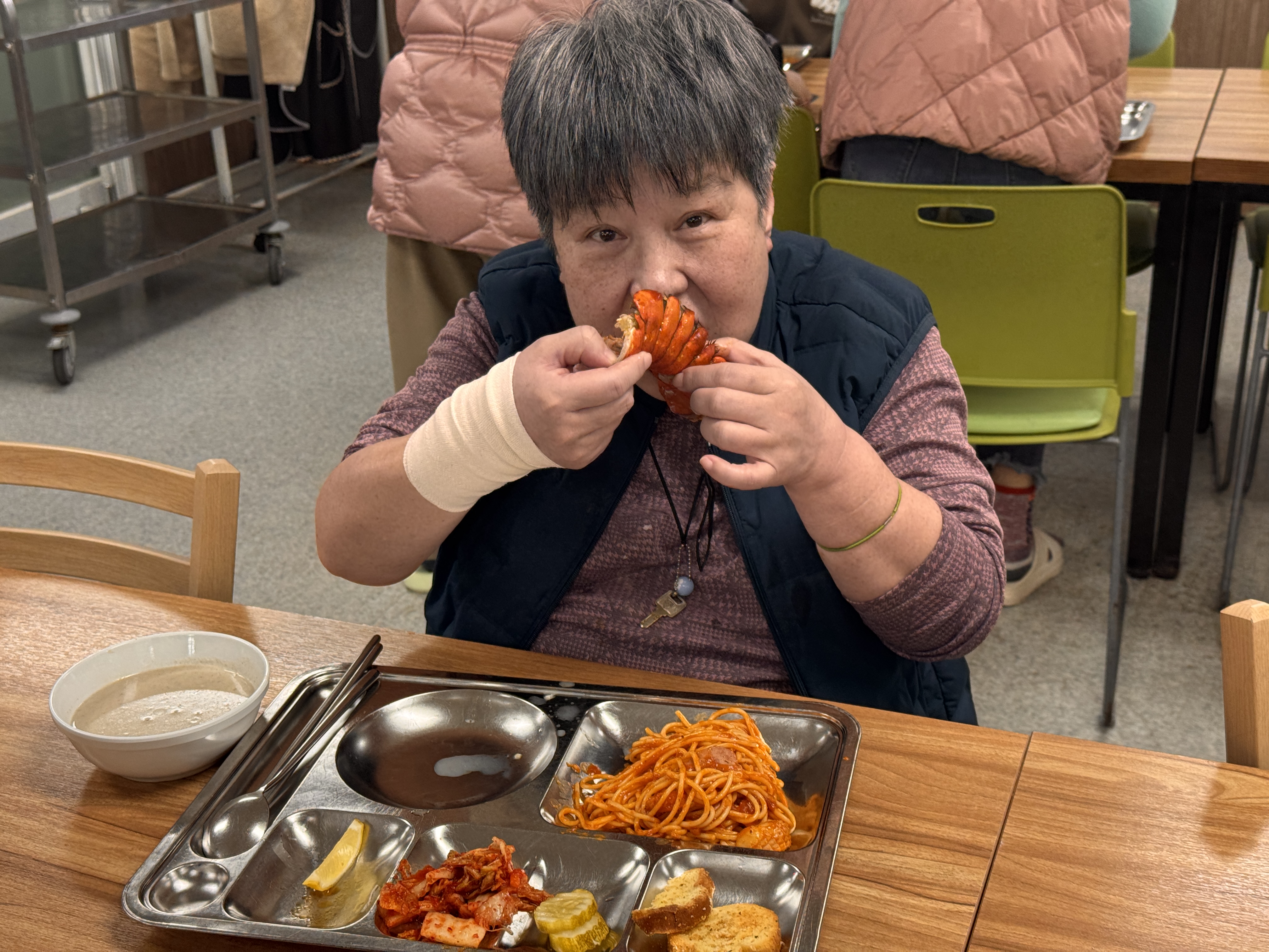 어느덧 한 해의 끝자락에 다다른 12월, 파랑새둥지에서는 올 한 해를 함께 견뎌내고 서로를 응원해 온 생활인분들과 종사자들이 따뜻한 마음을 나누는 아워홈 특식을 제공하였습니다. 이번 특식은 평소와는 다른 특별한 추억을 선물하고자 랍스터 특식을 준비하여 제공하였습니다. 신선한 재료로 정성스럽게 조리된 요리는 생활인분들께 색다른 즐거움과 만족감을 전해주었고, 식사 시간 내내 밝은 표정과 웃음이 가득하고 따뜻한 분위기가 이어졌습니다.