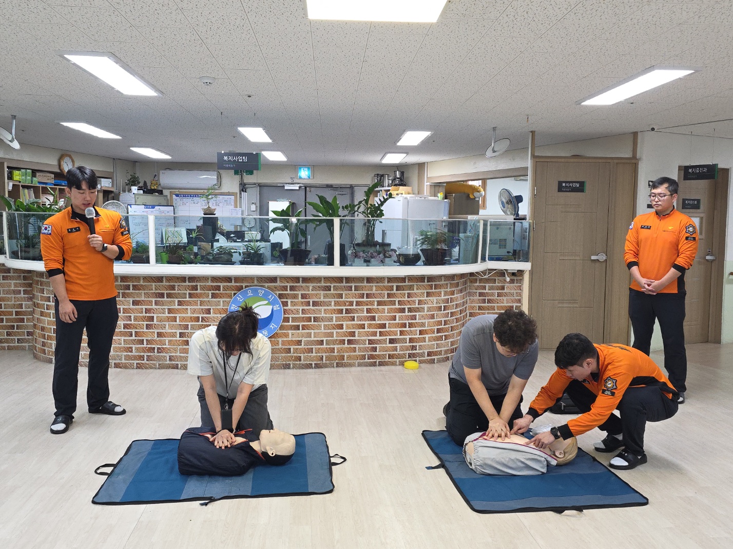 ◇내 용 : 파랑새둥지 전생활인과 종사자들은 금일 하반기 소방대피 훈련을 실시 하였습니다. 아산소방서와 합동으로 연간 2회 실시하는 대피 훈련 중 2025년 두번째 훈련을 무사히 진행하였습니다. 대피 훈련에 이어서 종사자들은 심폐소생술과 재세동기 사용법에 대한 교육 및 실습도 진행 하였습니다. 파랑새둥지는 재해로부터 안전하기 위해 최선을 다하겠습니다.