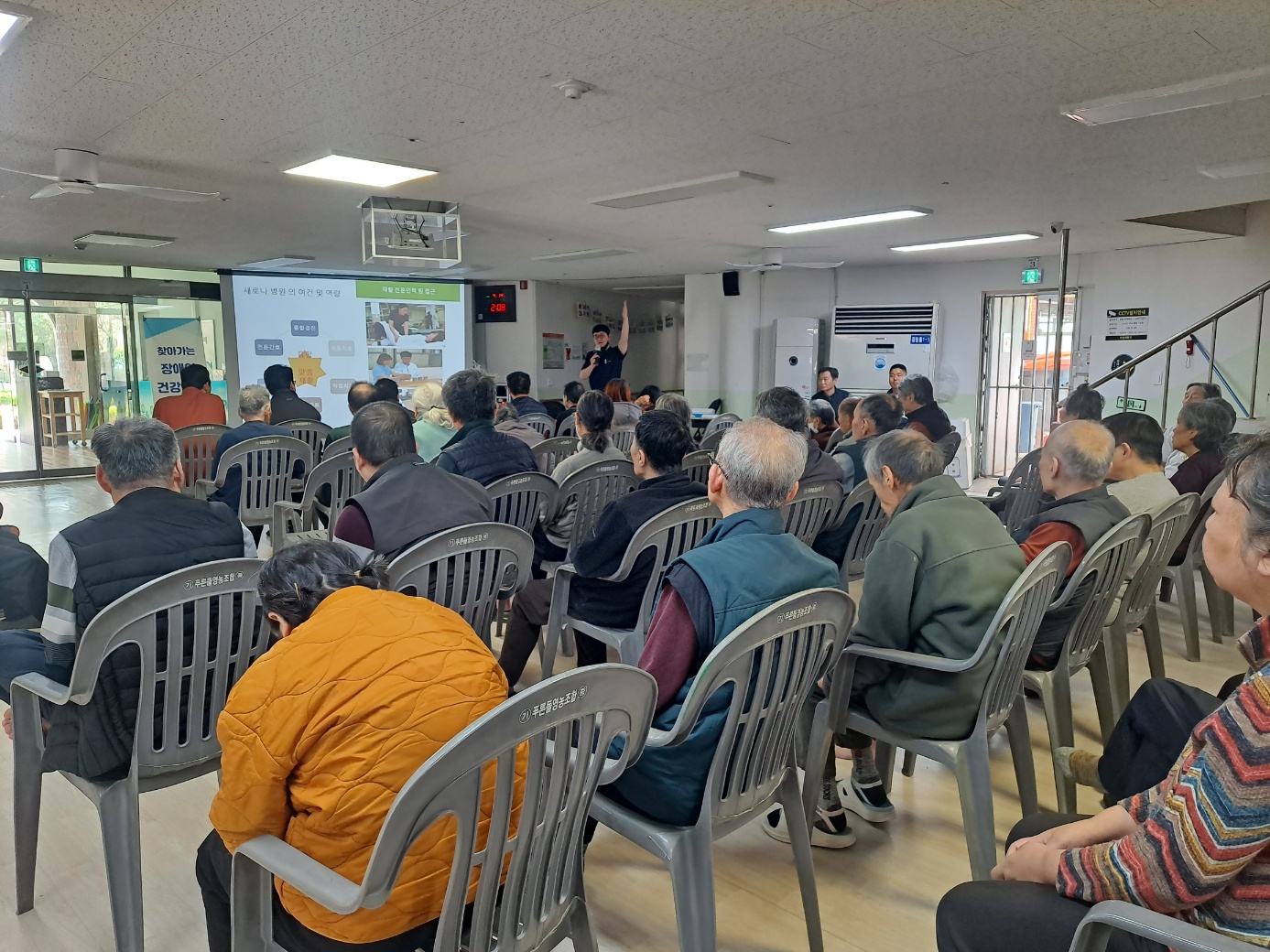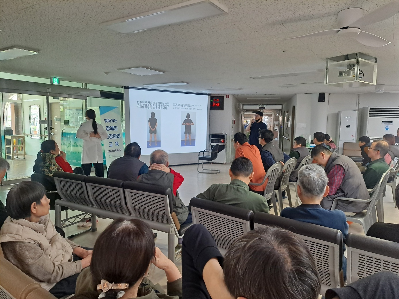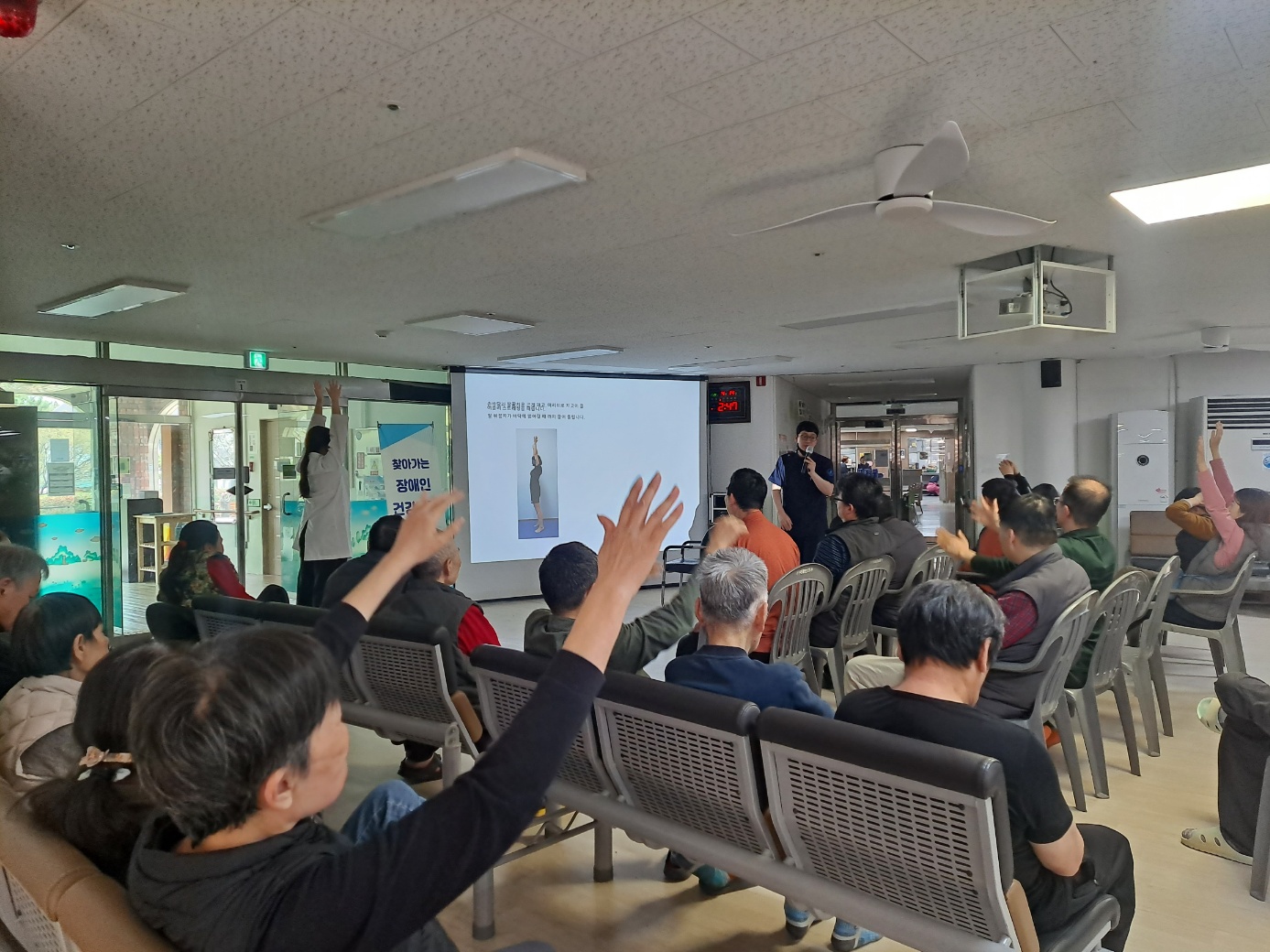 생활인분들의 낙상 예방을 위한 여러가지 운동법에 대하여 PPT를 활용한 교육 및 직접 실습을 해봄으로써, 보다 더 효율적인 교육을 시행하였습니다.