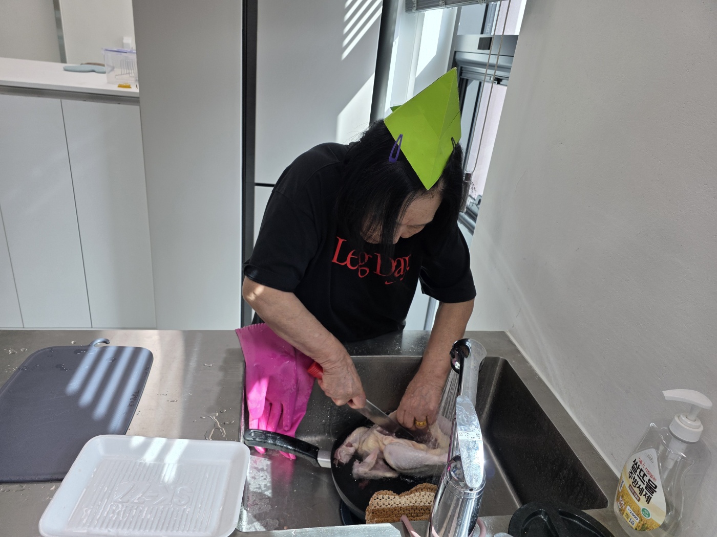 능숙한 솜씨로 닭을 손질하시는 달콤살벌한 자칭 봄처녀의 모습에서는 장인의 포스가 느껴졌습니다.