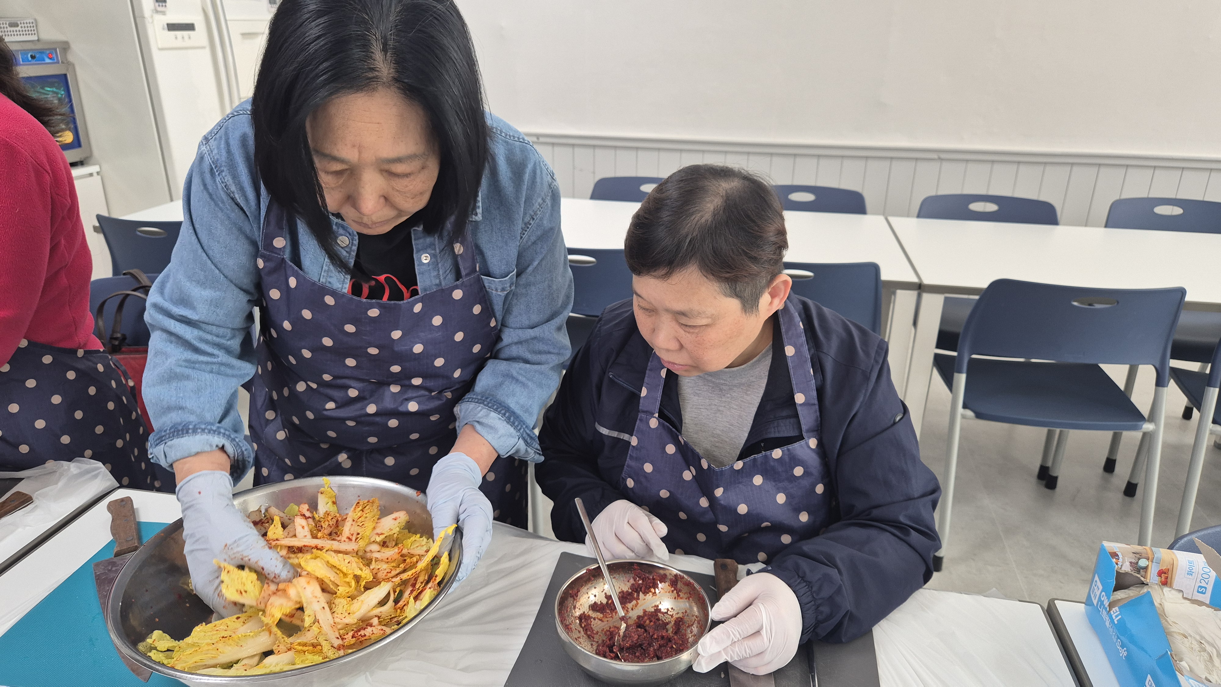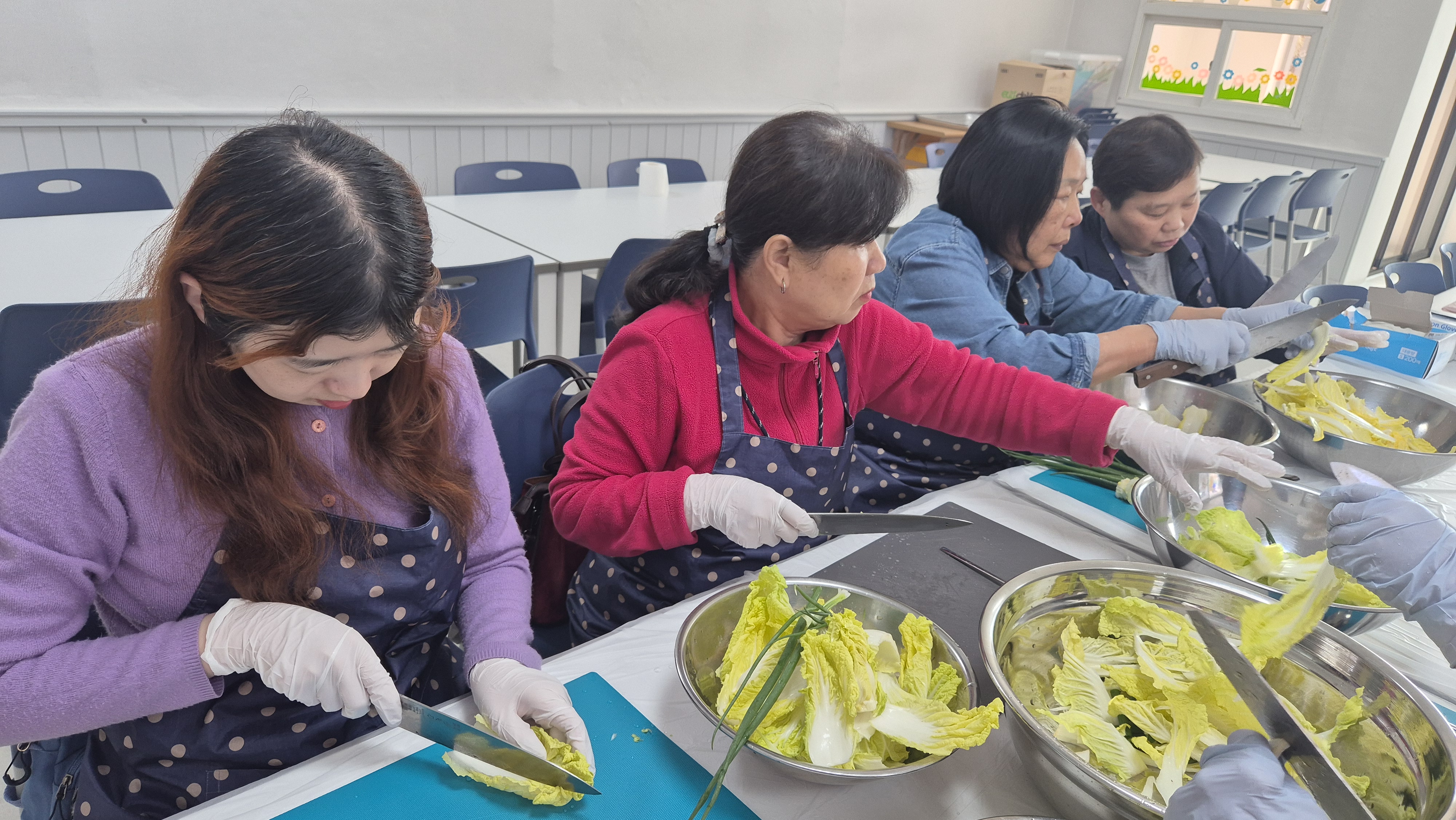 싱싱한 배추를 한 잎 한 잎 정성스럽게 자르고, 양념을 넣어 버무리는 손길에는 각자의 추억과 경험이 담겨 있었습니다.