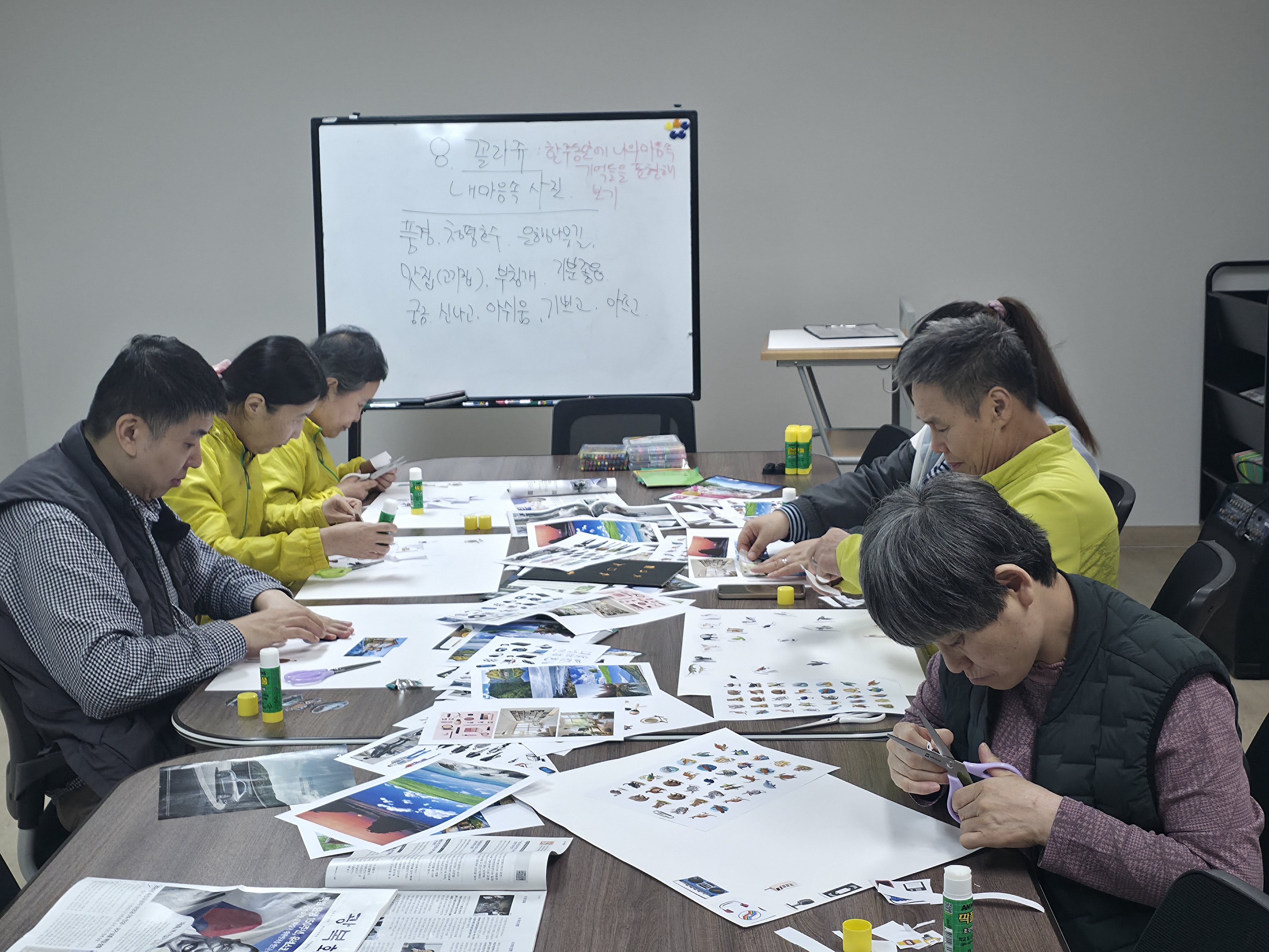 눈길이 머무는 이미지들을 하나씩 오려내고, 4절 도화지 위에 차곡차곡 붙이며 각자의 이야기를 만들어갔습니다.