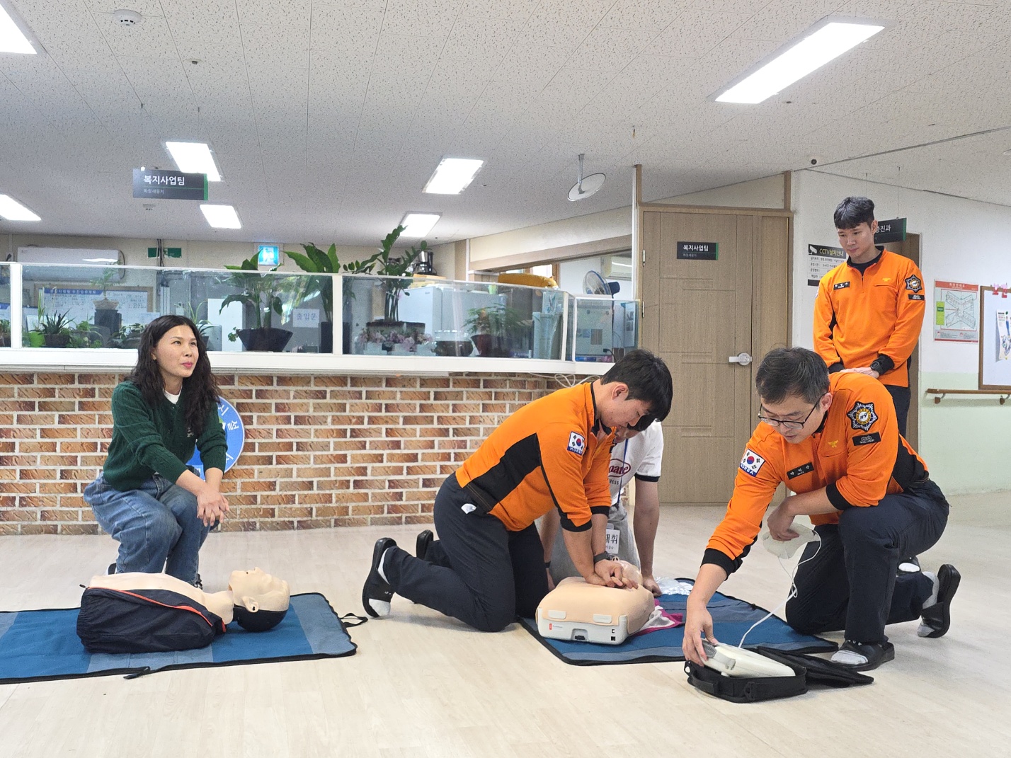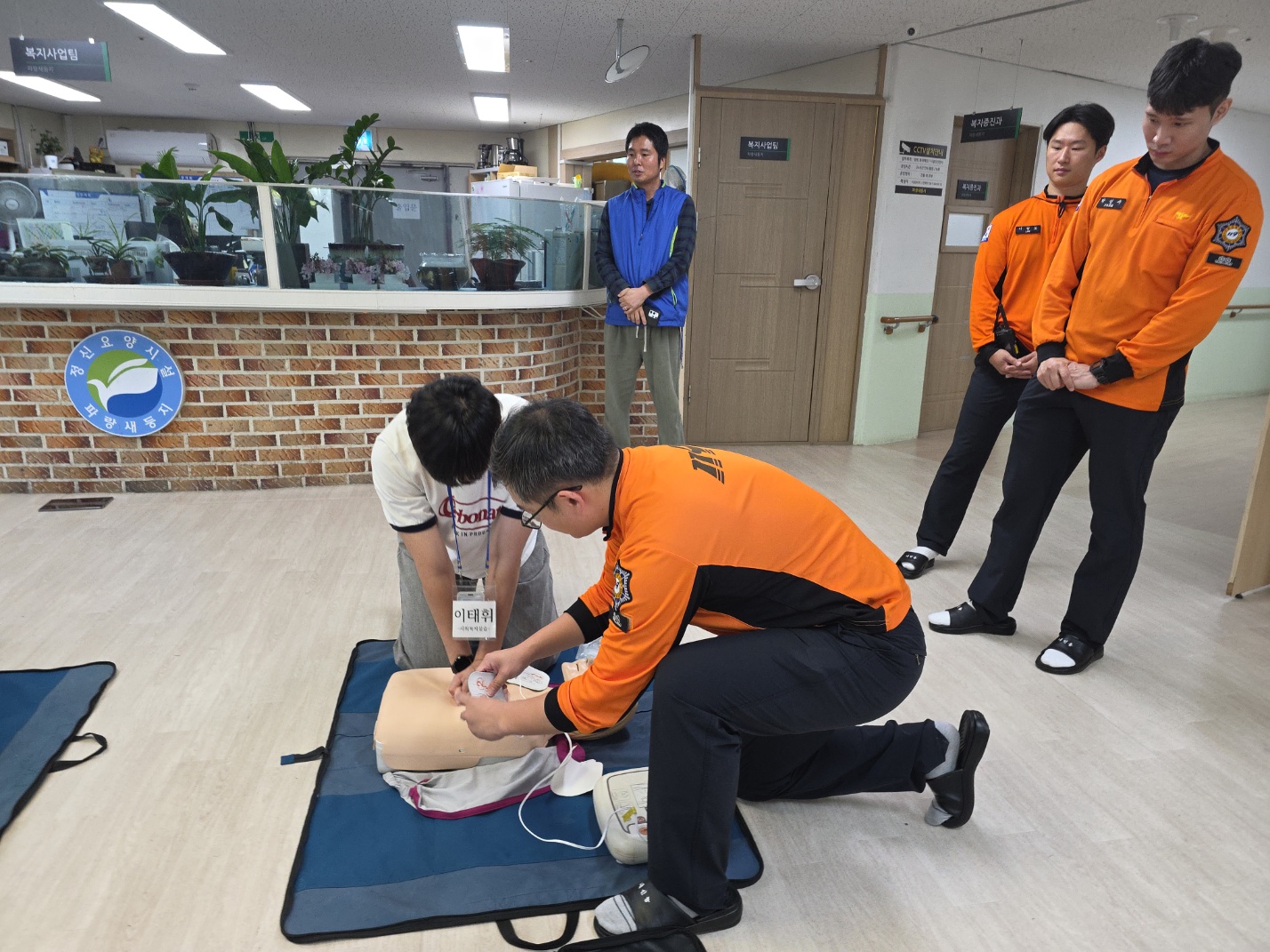 ◇내 용 : 파랑새둥지 전생활인과 종사자들은 금일 하반기 소방대피 훈련을 실시 하였습니다. 아산소방서와 합동으로 연간 2회 실시하는 대피 훈련 중 2025년 두번째 훈련을 무사히 진행하였습니다. 대피 훈련에 이어서 종사자들은 심폐소생술과 재세동기 사용법에 대한 교육 및 실습도 진행 하였습니다. 파랑새둥지는 재해로부터 안전하기 위해 최선을 다하겠습니다.