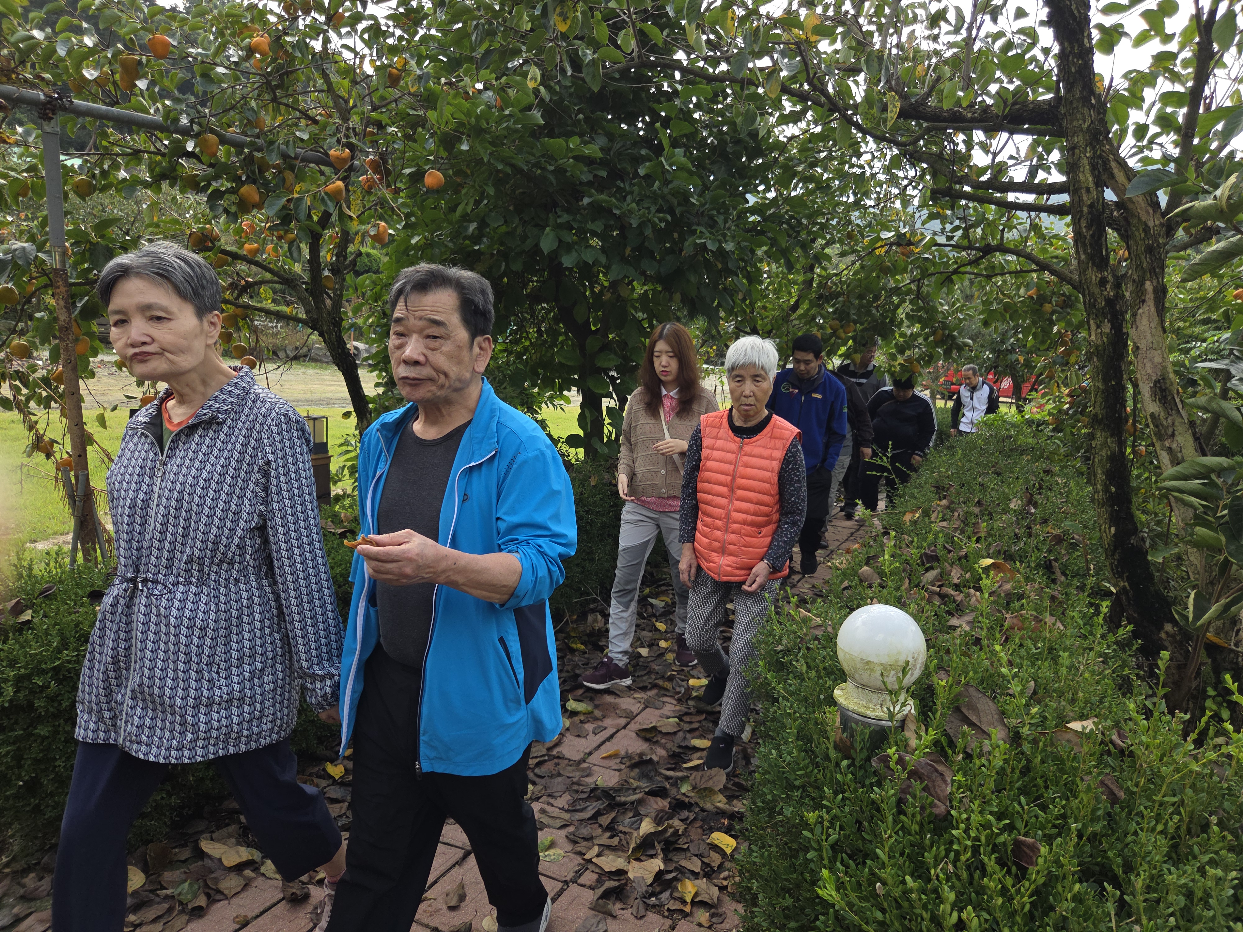 치유농업 감따기 체험 활동을 다녀왔습니다. 눈부신 햇살과 시원한 바람 속에서 익어가는 감을 직접 따보며 수확의 기쁨을 나누는 시간을 보냈습니다. 주황빛 홍시, 빨간 대추, 으름열매, 사과 등도 직접 따서 먹는 산책활동을 통해 자연과의 교감과 정서적 안정을 느낄 수 있었답니다.