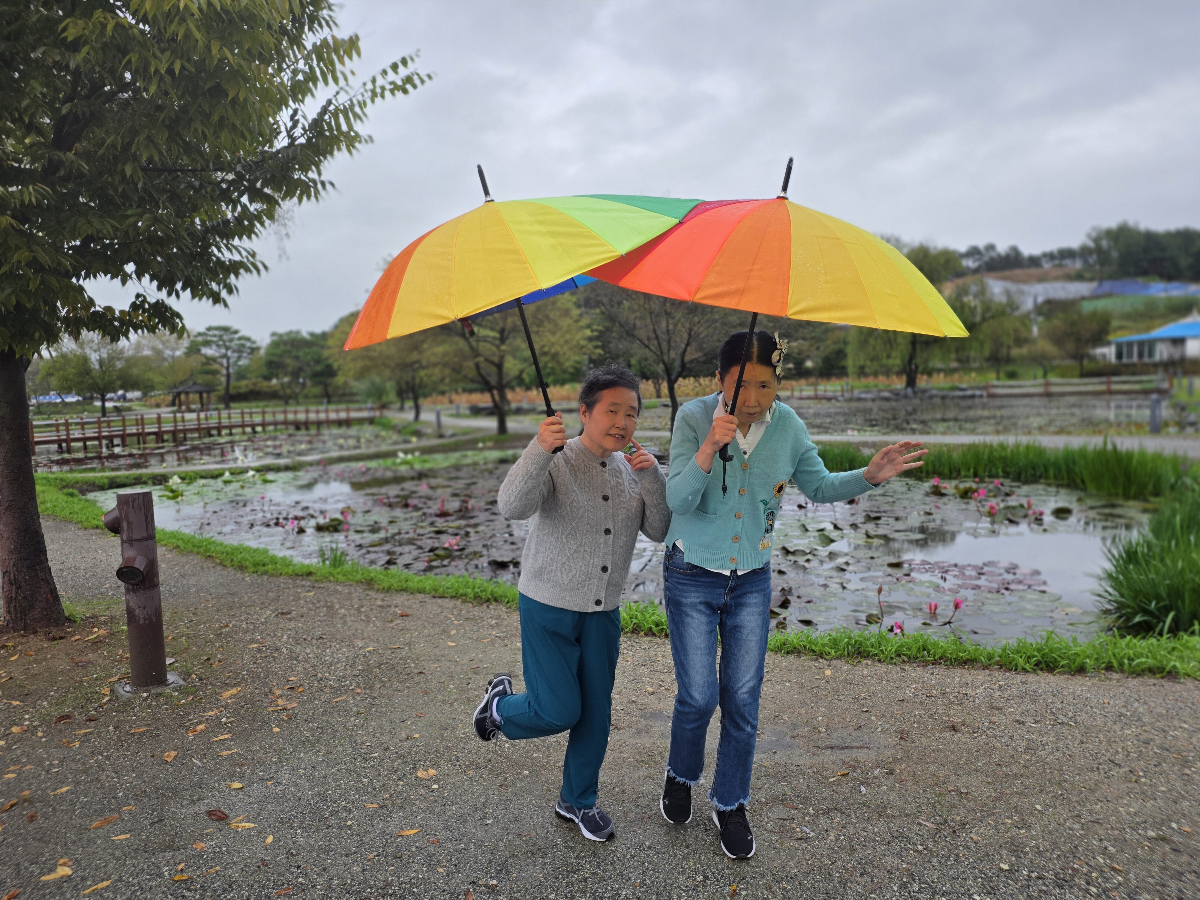 비가 왔지만 궁남지에 들려 산책도 하고 요즘 유행한다는 춤도 춰 보며 서로 웃음을 나눌 수 있는 하루였습니다.