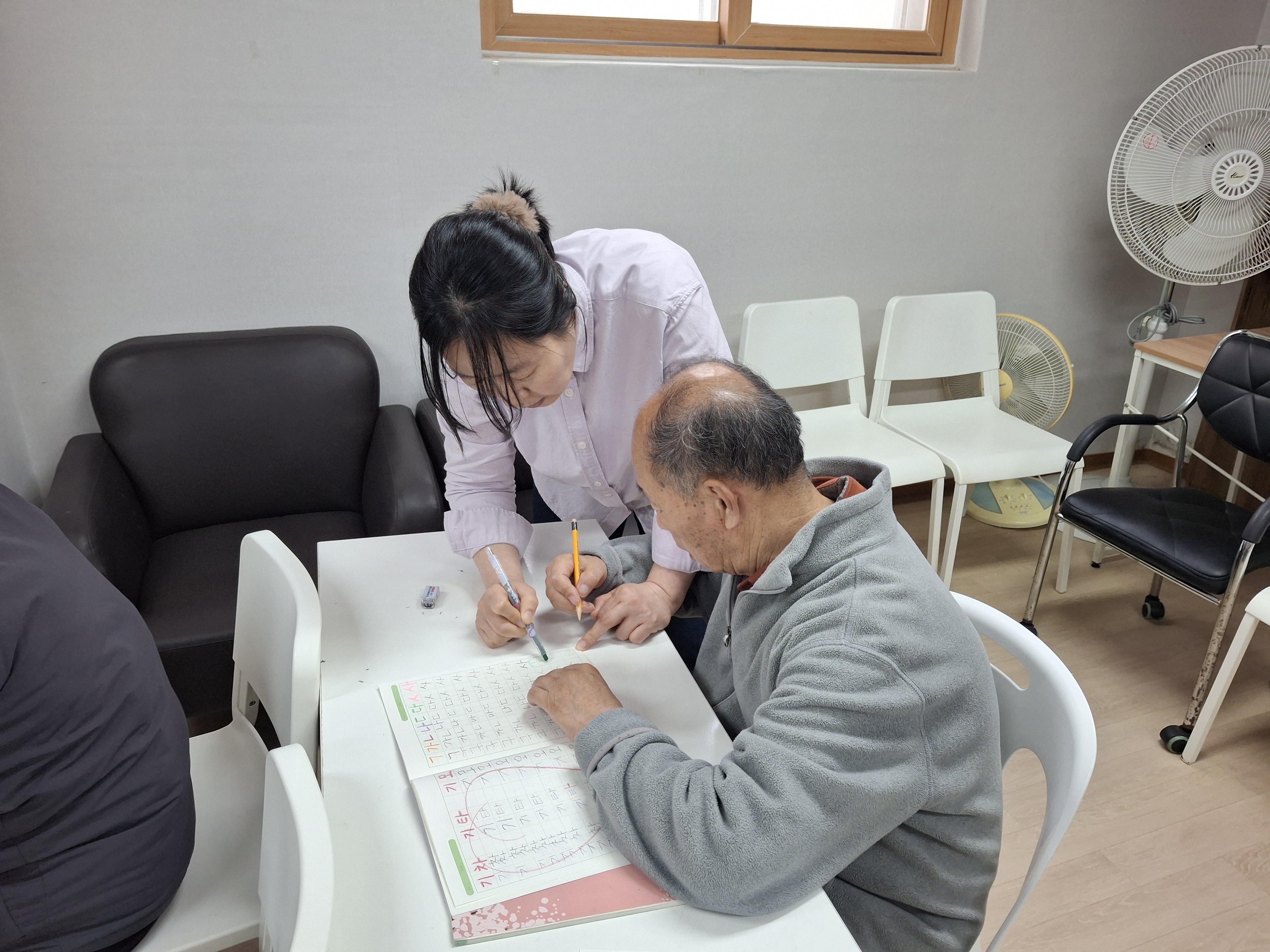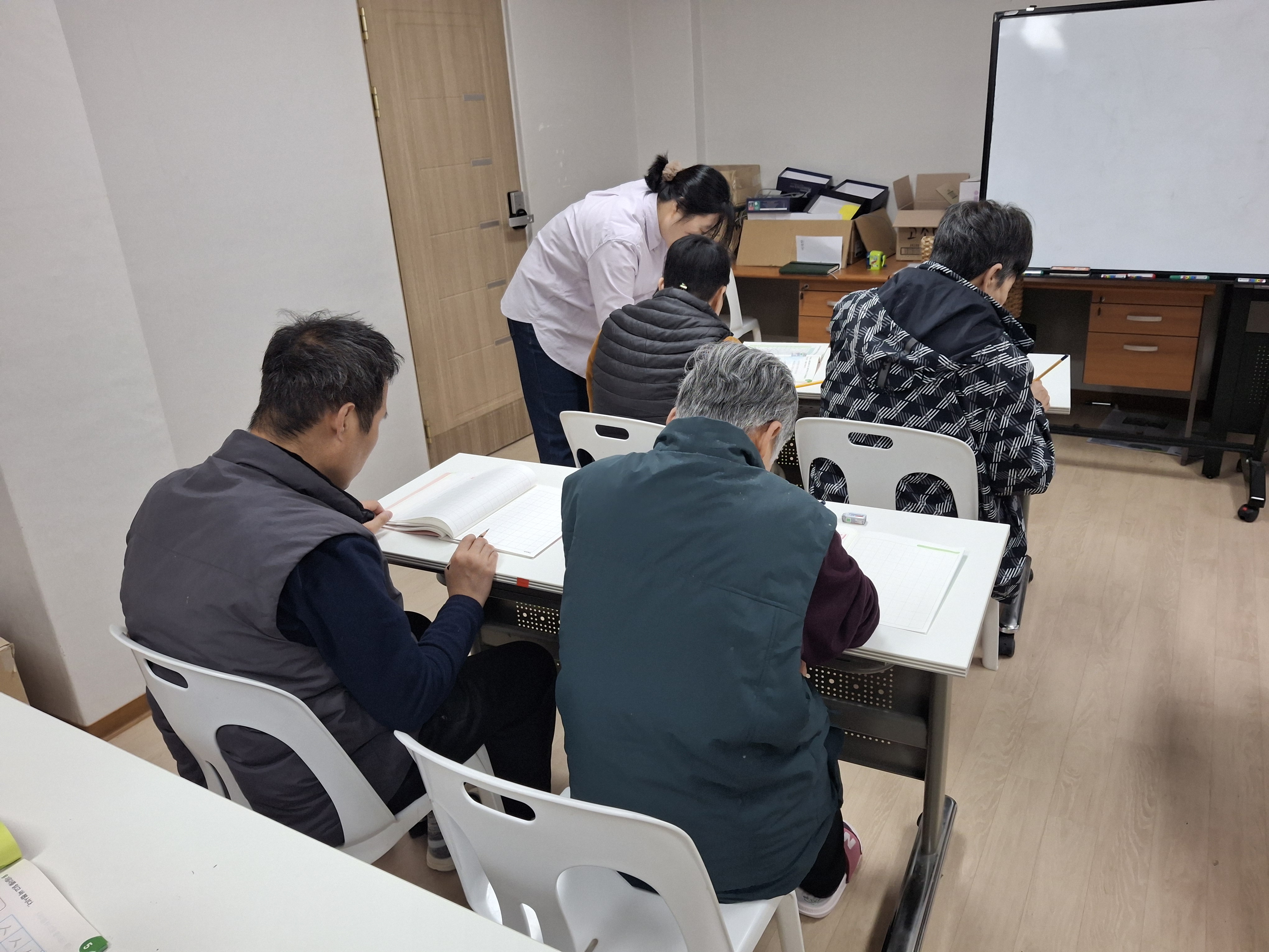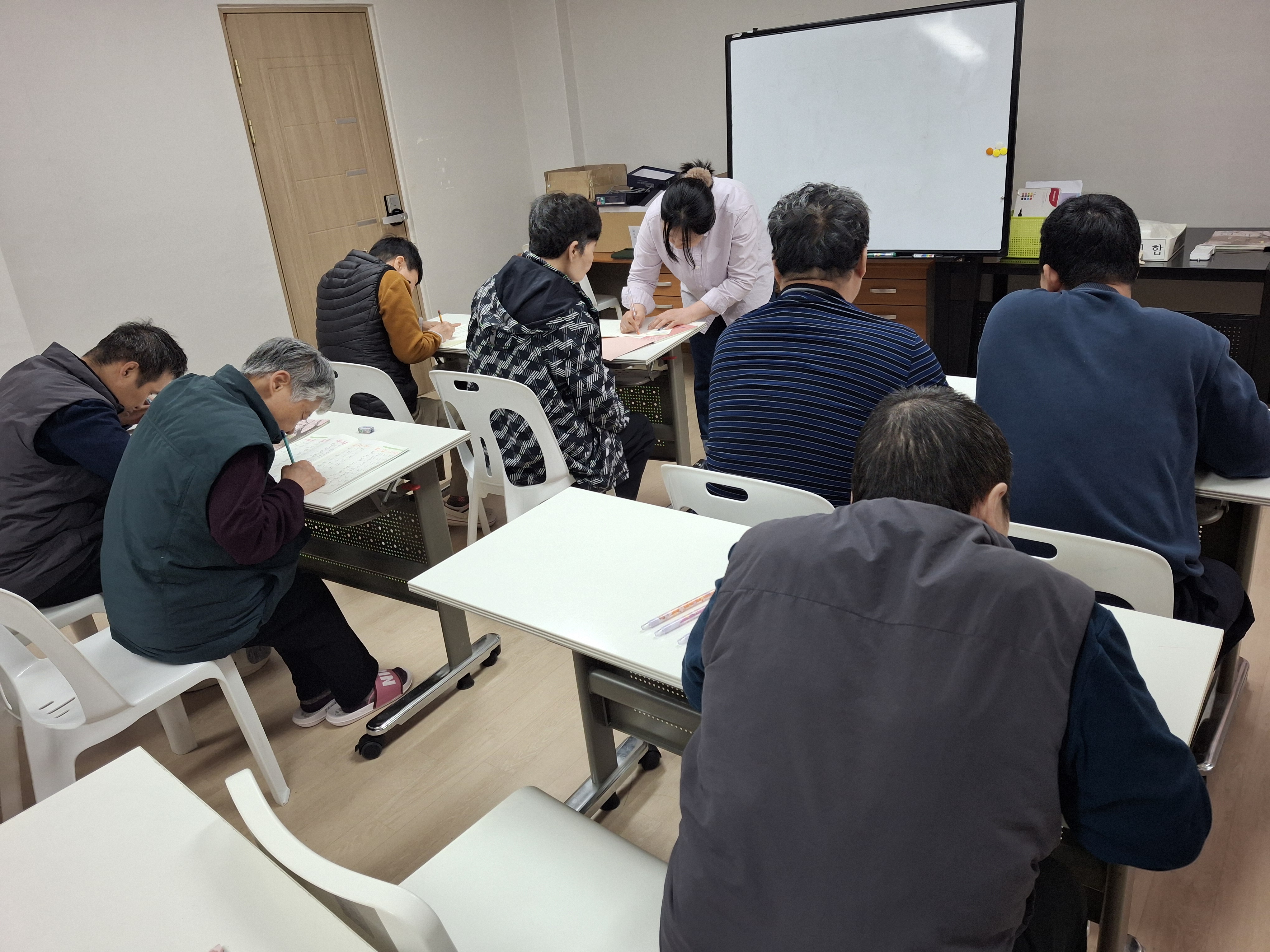 계시지만 수업에 참석을 하시면 열정적으로 질문도 하시고 쓰기 연습도 하시는 모습이 참 보기 좋아 보였습니다.
