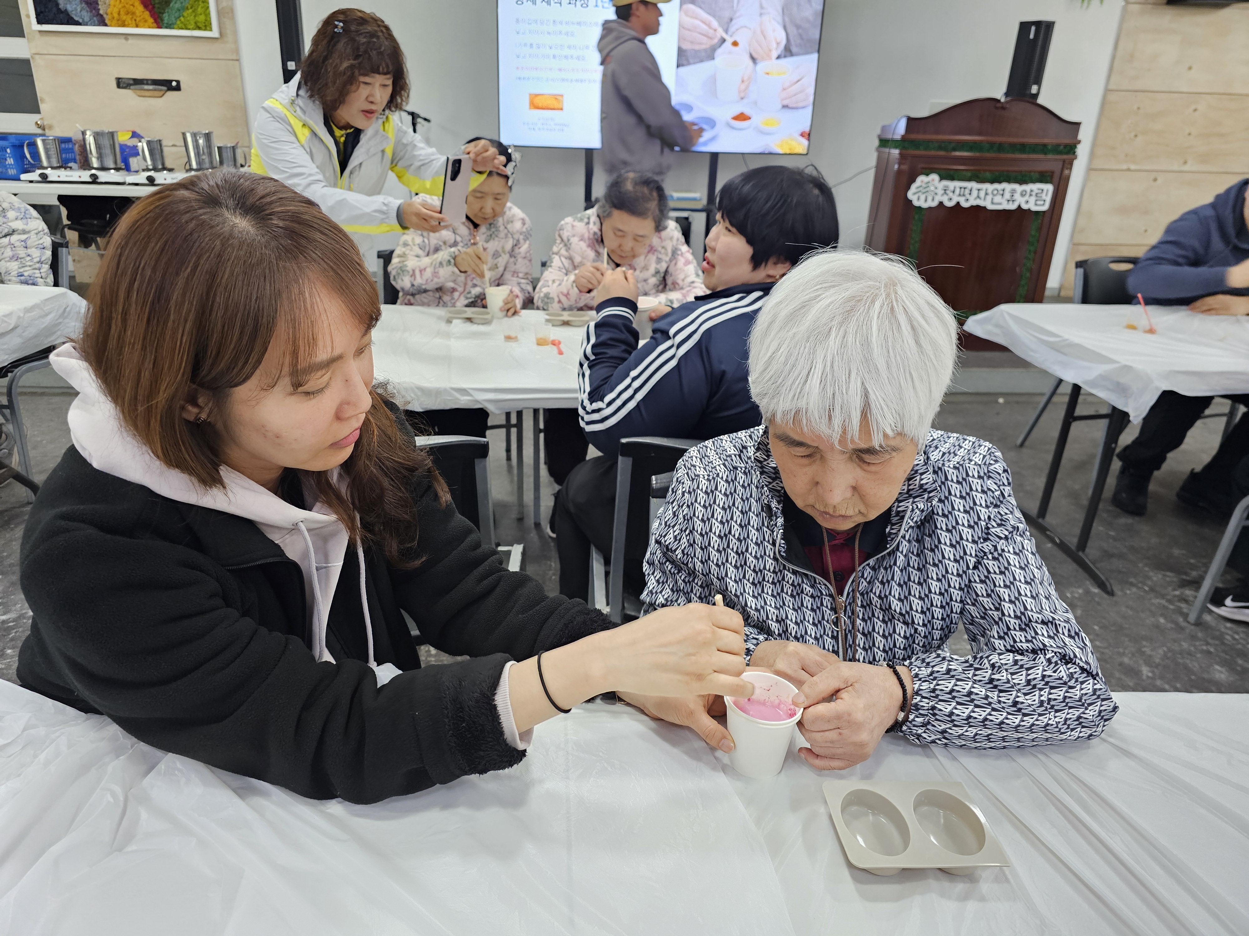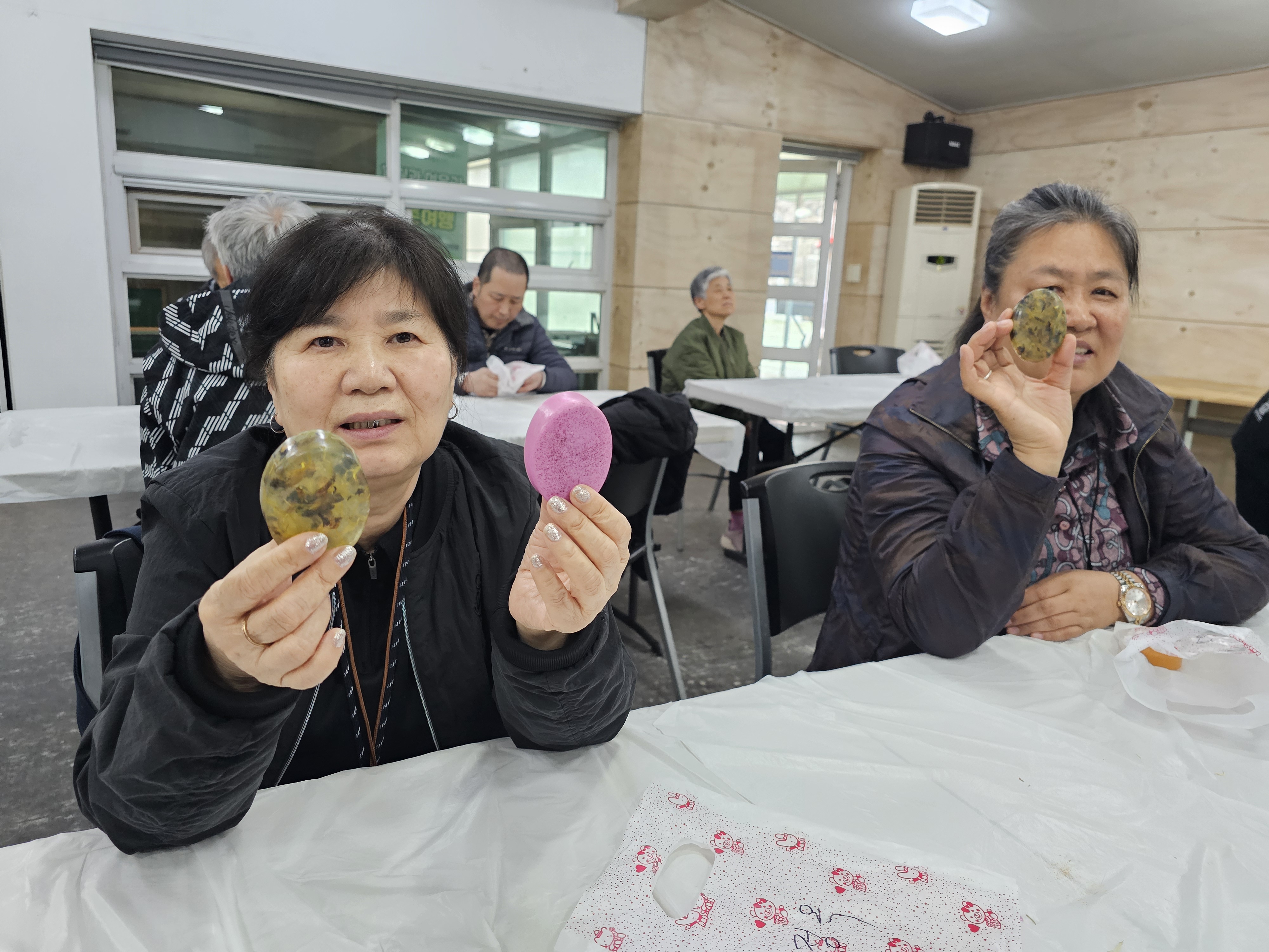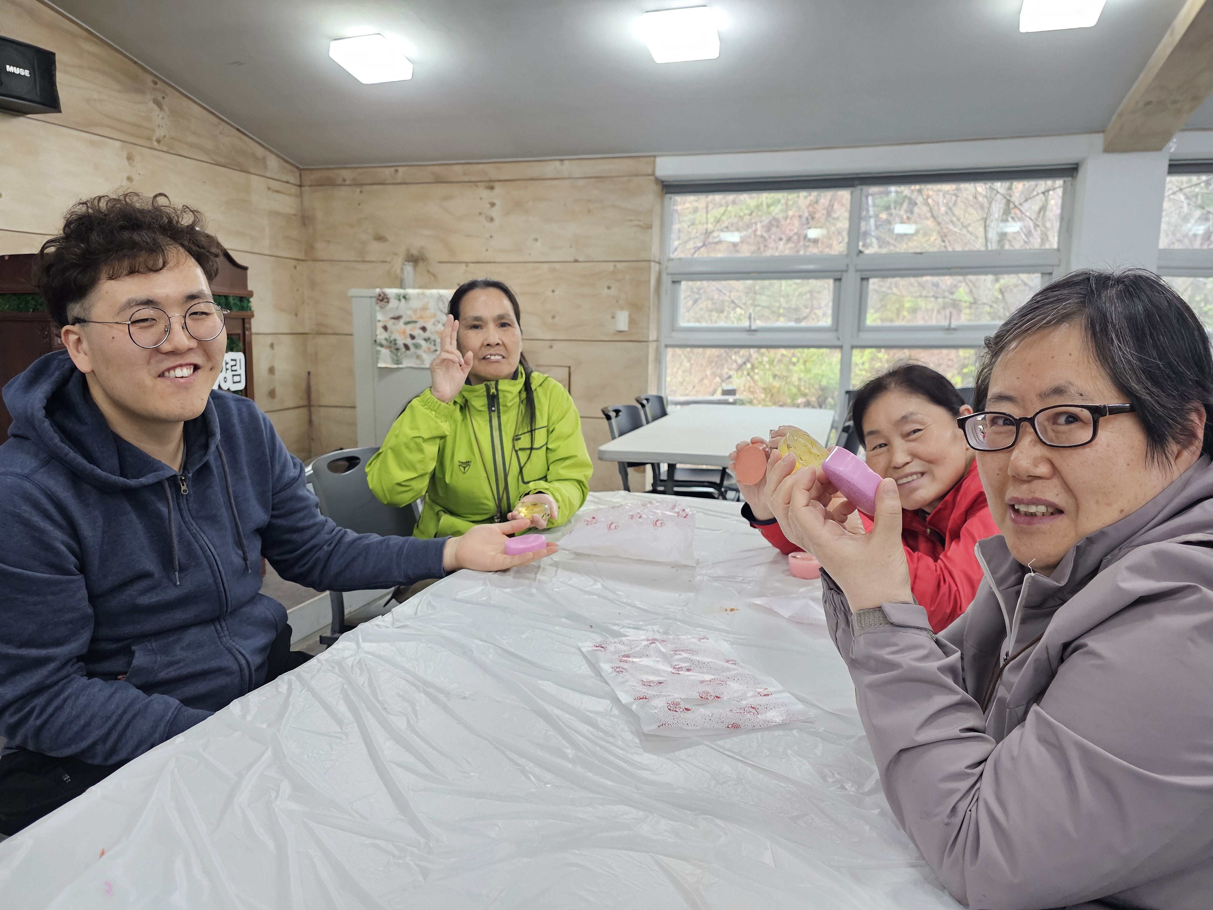 생활인분들은 손비누 만들기 설명에 귀를 기울이고, 각자 정성껏 만든 비누를 손에 쥐며 뿌듯해하셨습니다.