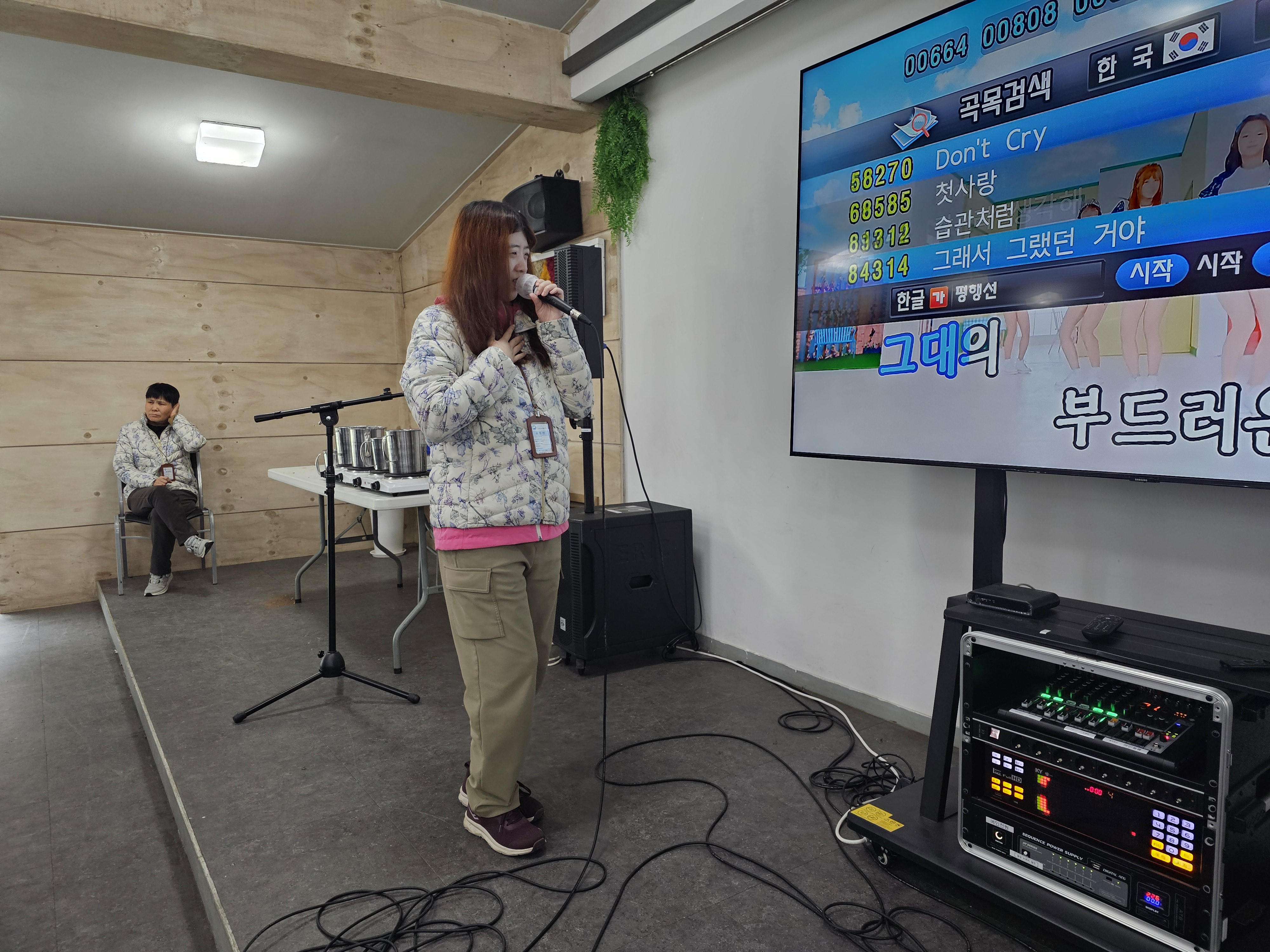 이후 실내 노래방 프로그램으로 하루의 피로를 날려 버렸습니다. 마이크 앞에서 누구나 주인공이 되는 시간이었습니다.
