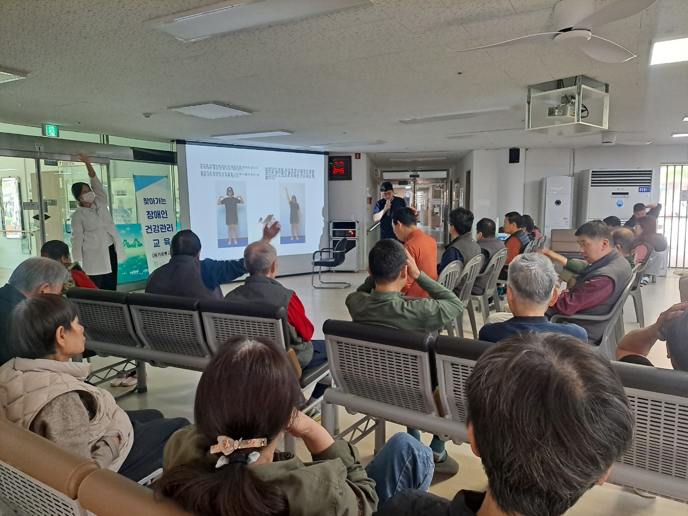 생활인분들의 낙상 예방을 위한 여러가지 운동법에 대하여 PPT를 활용한 교육 및 직접 실습을 해봄으로써, 보다 더 효율적인 교육을 시행하였습니다.