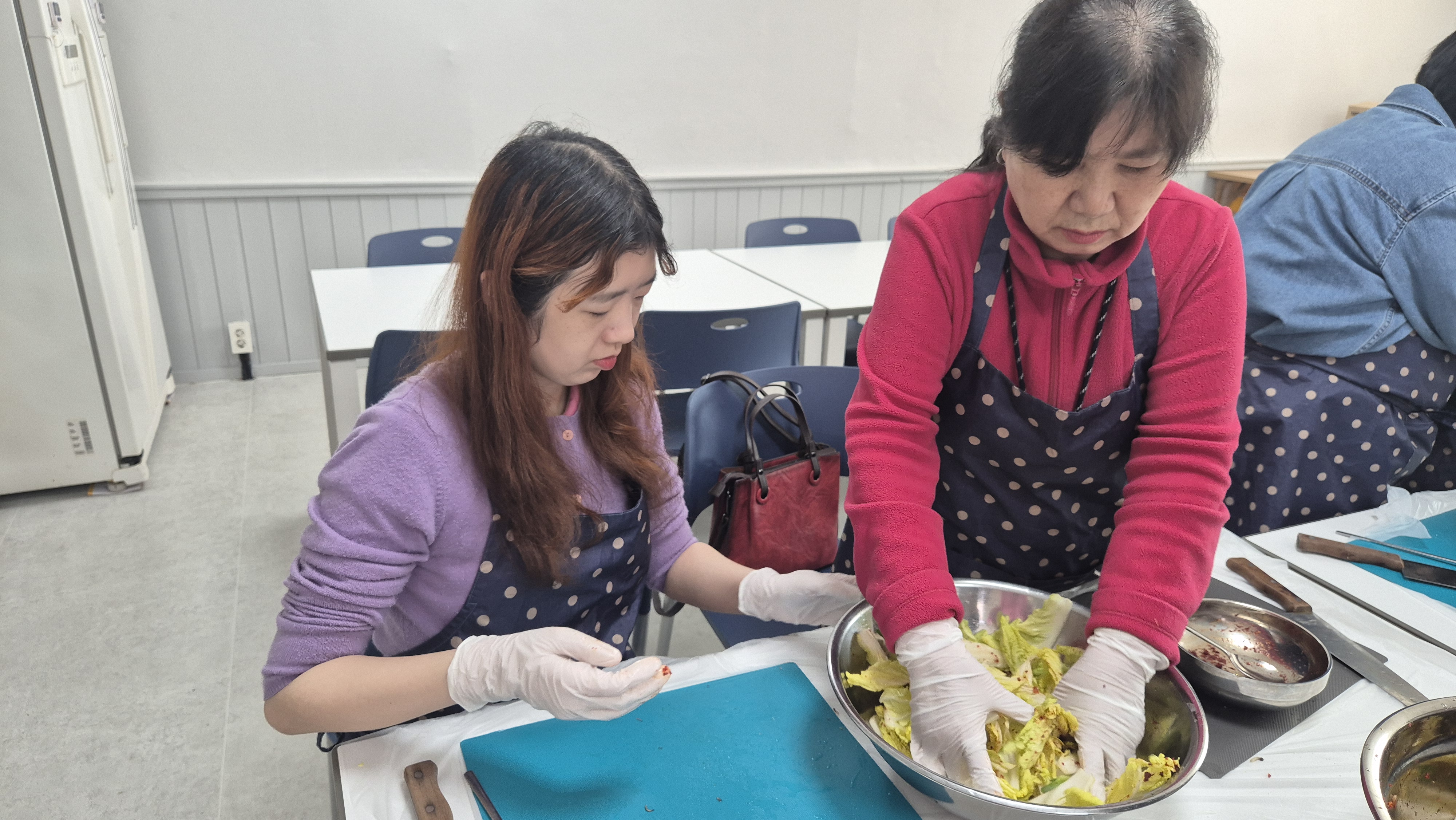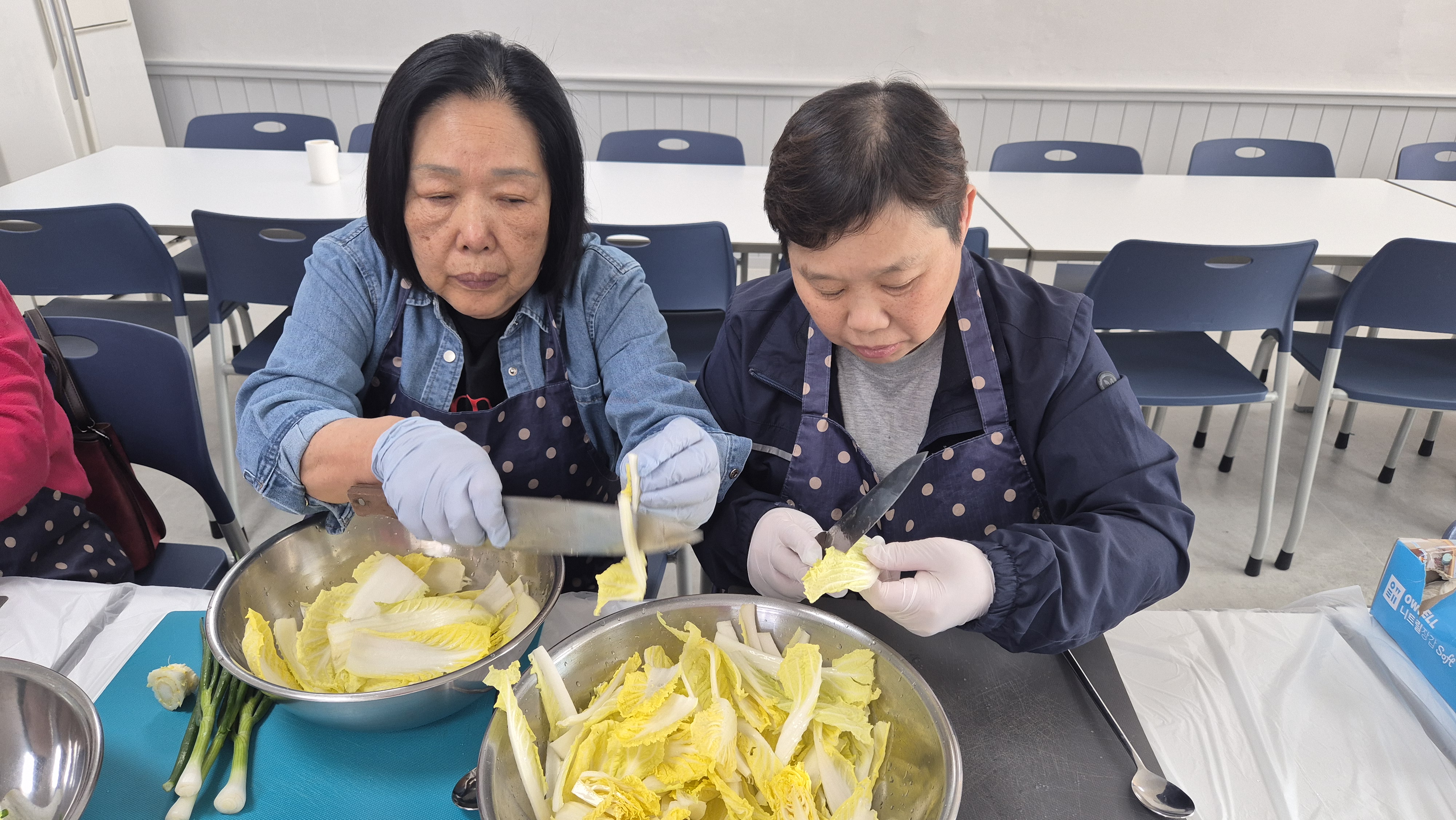 싱싱한 배추를 한 잎 한 잎 정성스럽게 자르고, 양념을 넣어 버무리는 손길에는 각자의 추억과 경험이 담겨 있었습니다.